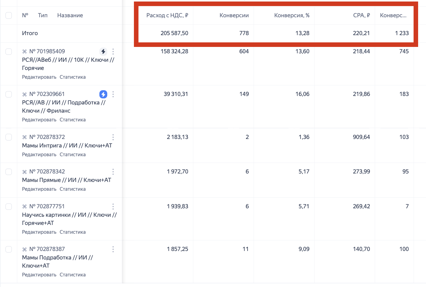 — Подробный отчет по вашим текущим рекламным кампаниям, если они запущены, и какие узкие горлышки в них есть.