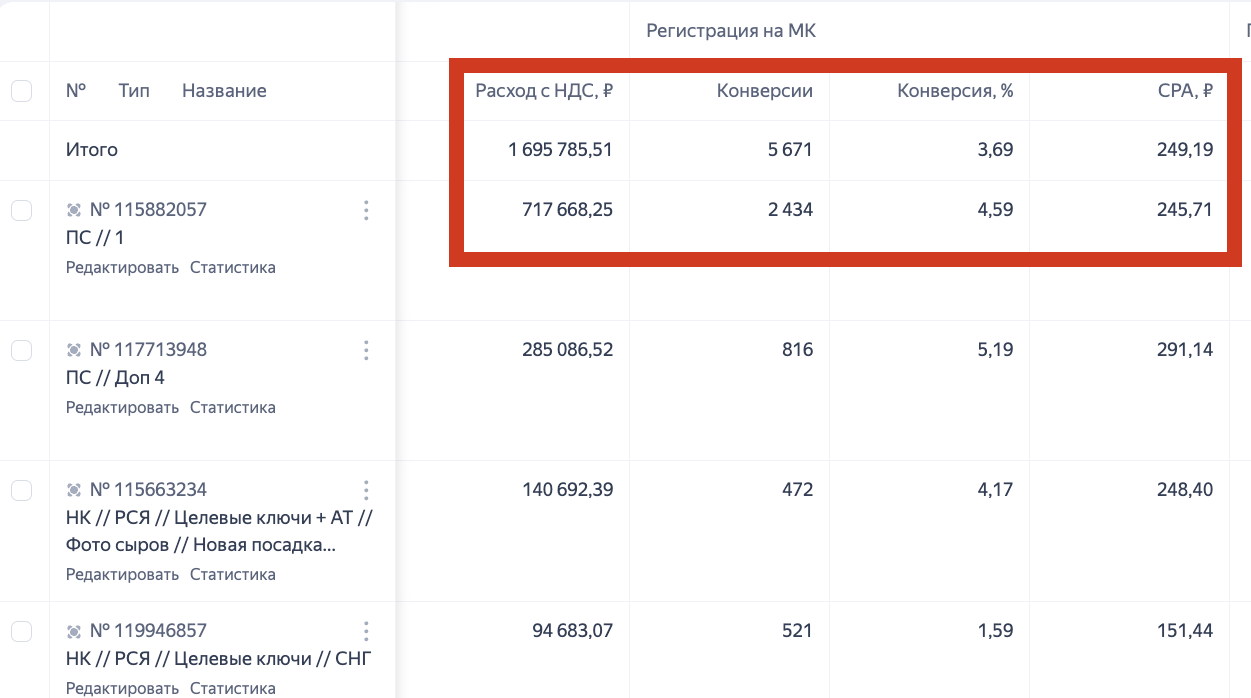 2️⃣ Смелость превысить KPI ради качества — переход на более дорогую, но конвертящую аудиторию (240 vs 210 рублей)