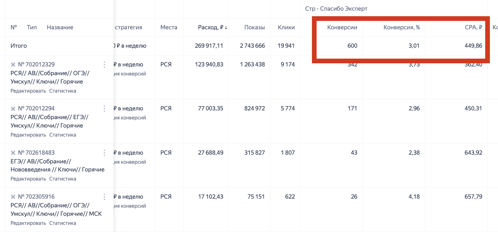 1️⃣ Четкая сегментация по типу экзамена — разделение кампаний